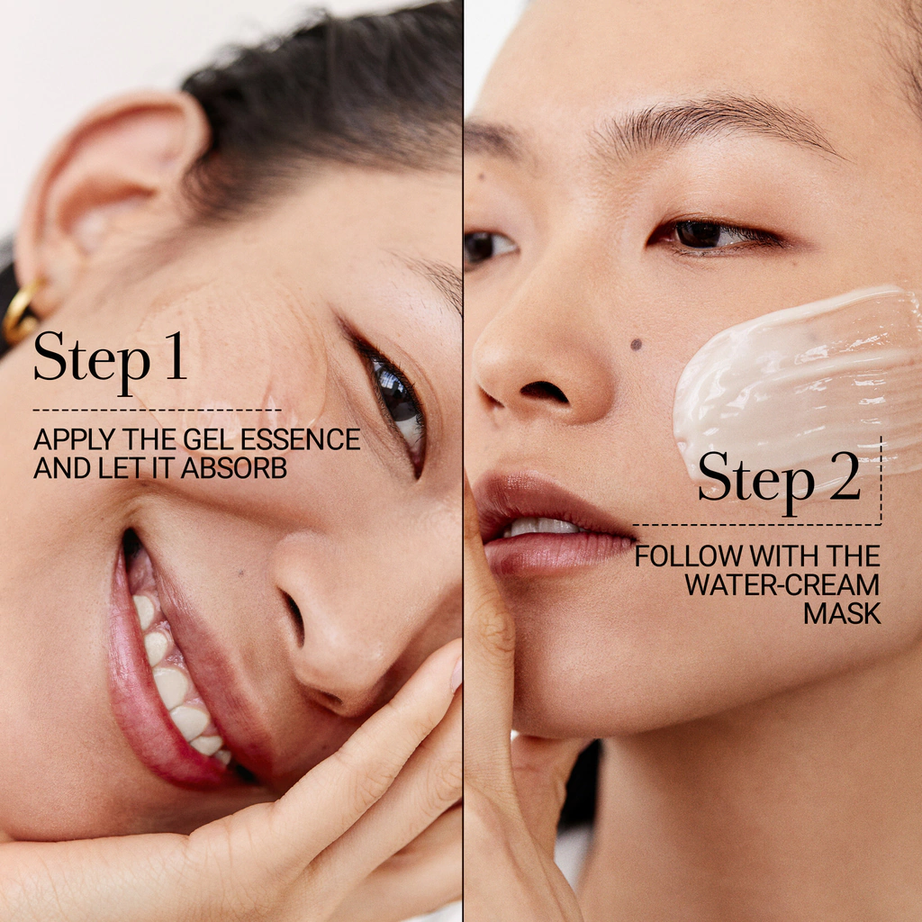 Qué es: una mascarilla de dos pasos que brinda hidratación continua durante la noche, empapando la piel con humedad y luego bloqueándola para una apariencia suave y húmeda.