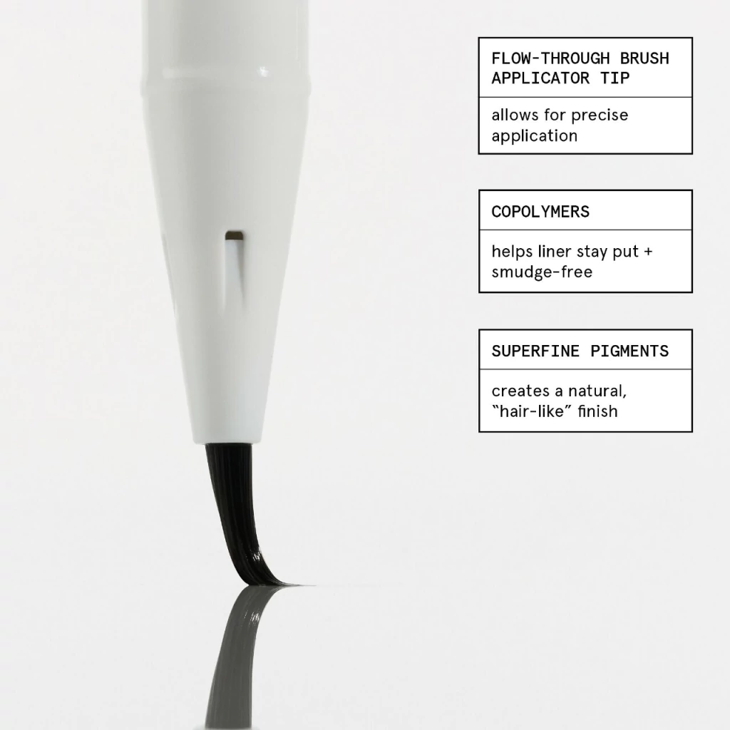 Qué es: Un fino bolígrafo líquido para cejas con punta de pincel que llena y define las cejas con trazos similares a plumas para unas cejas de aspecto más completo con un acabado resistente a las manchas.
