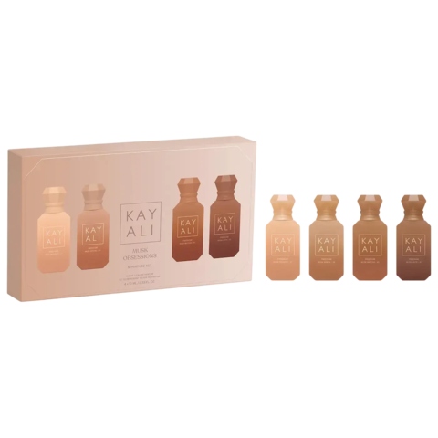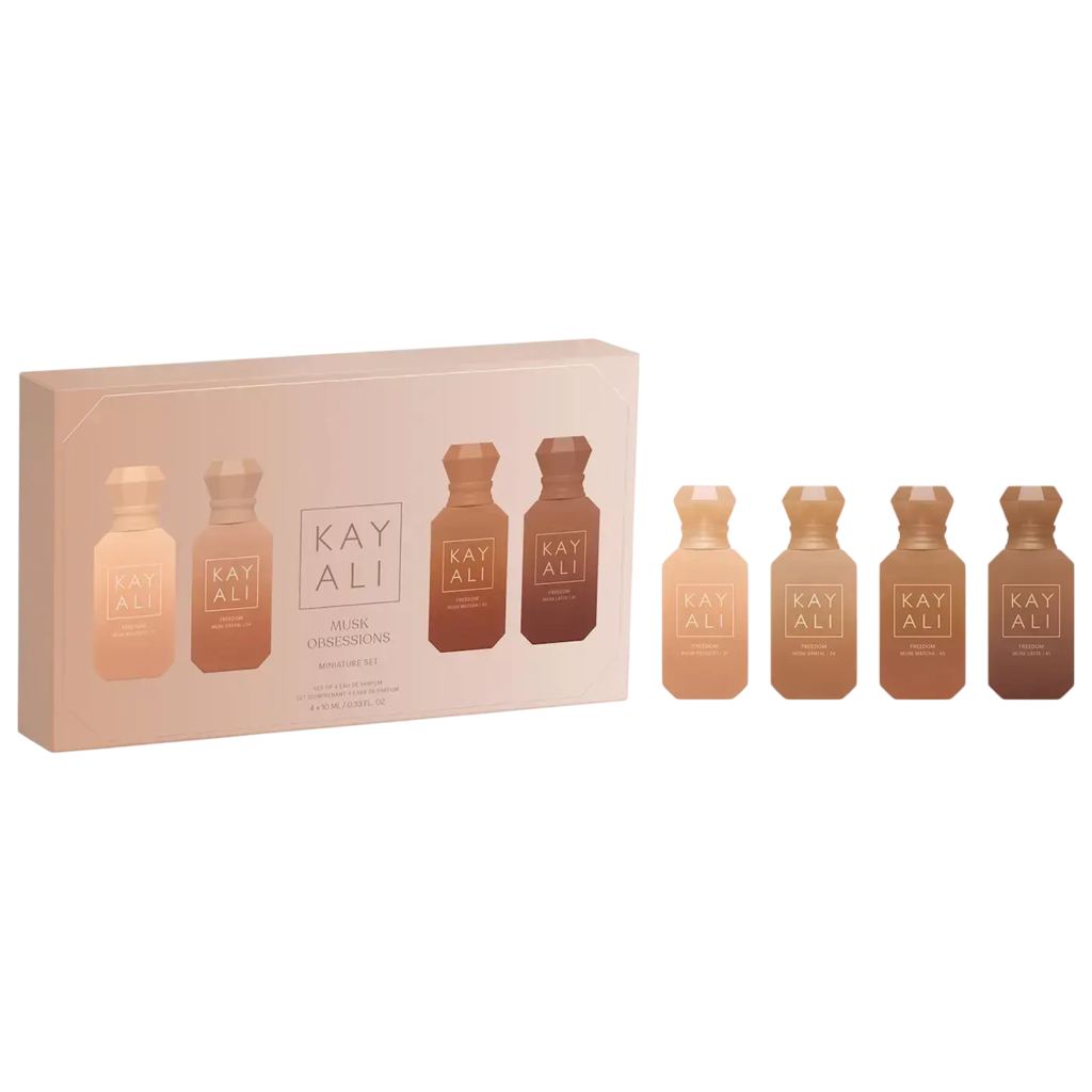 Celebre la belleza de la autoexpresión con el conjunto en miniatura KAYALI Musk Obsessions de edición limitada.