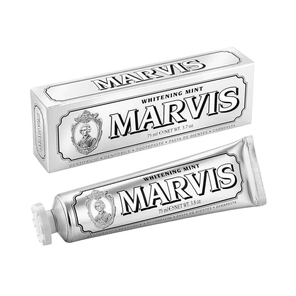Marvis Whitening Mint, con un sabor agudo a menta fresca para una frescura agradable y duradera, ayuda a eliminar la placa, mientras que blanquea suavemente los dientes, para una sonrisa más brillante, hermosa y espléndida.