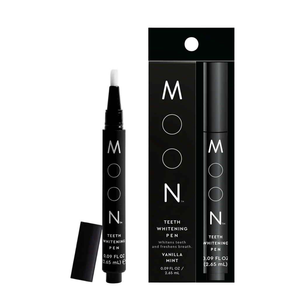 Con más de 1 millón de vendidos, el galardonado bolígrafo blanqueador de dientes de MOON ilumina instantáneamente los dientes sobre la mueva.
