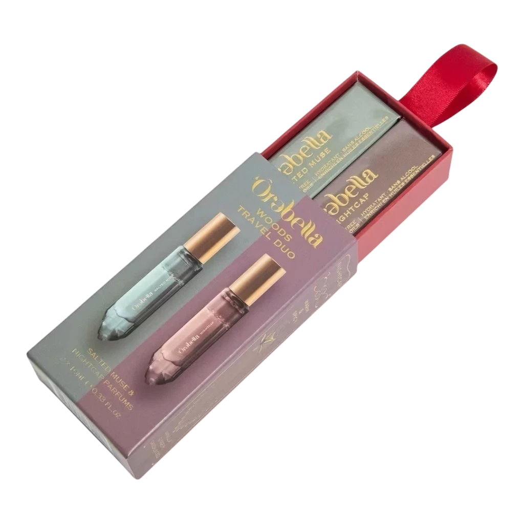 Este set de regalo de perfume estilo adorno de edición limitada incluye spray de viaje SALTED MUSE de madera marina y spray de viaje NIGHTCAP gourmet cálido y picante, lo que lo convierte en el regalo perfecto para colgar, compartir o guardar para ti.