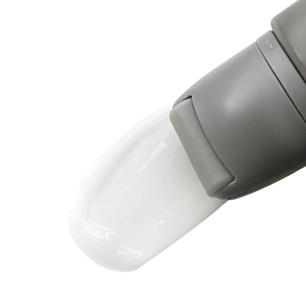 -Apriete suavemente el tubo para que la fórmula salga al aplicador de rodillo.